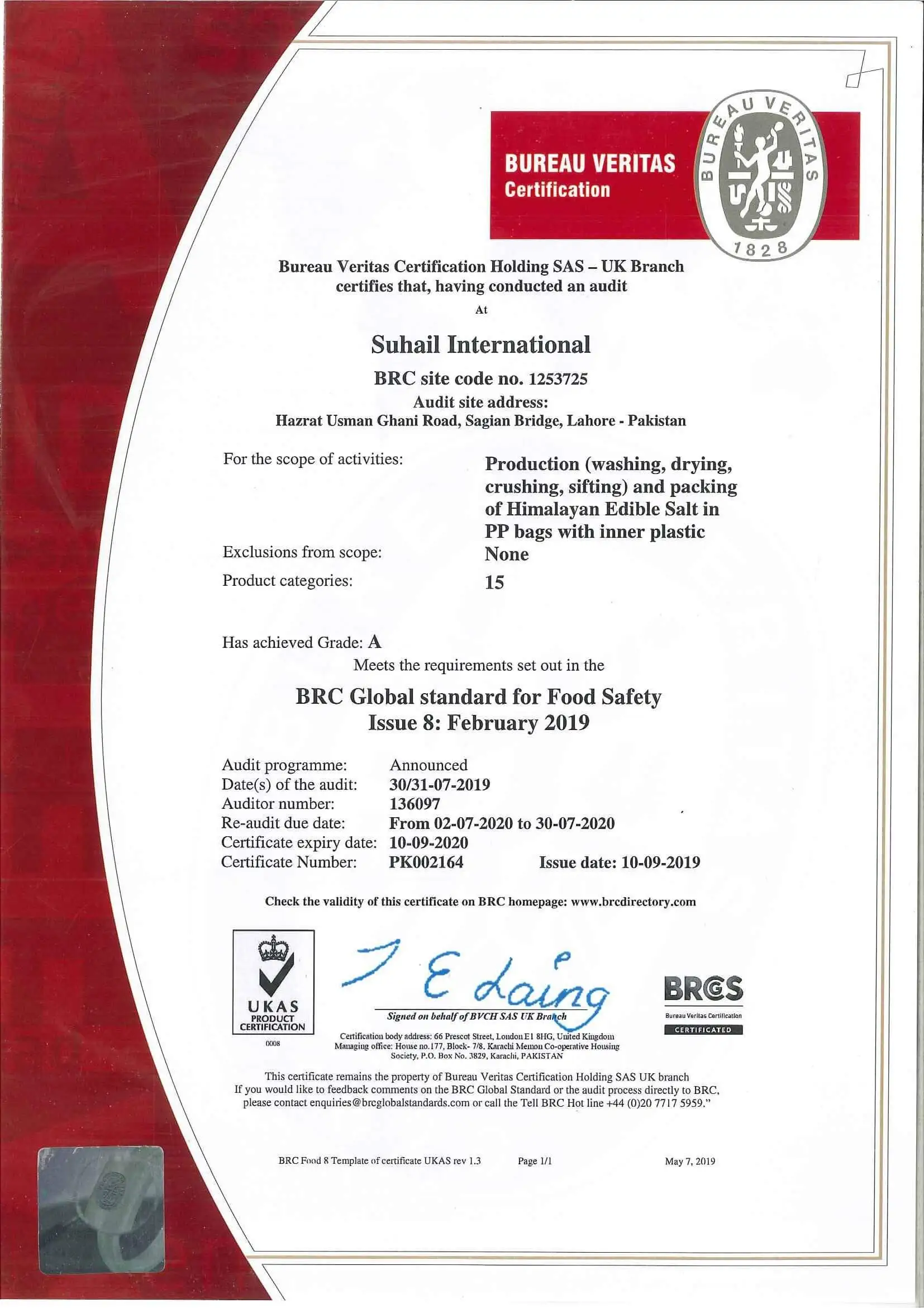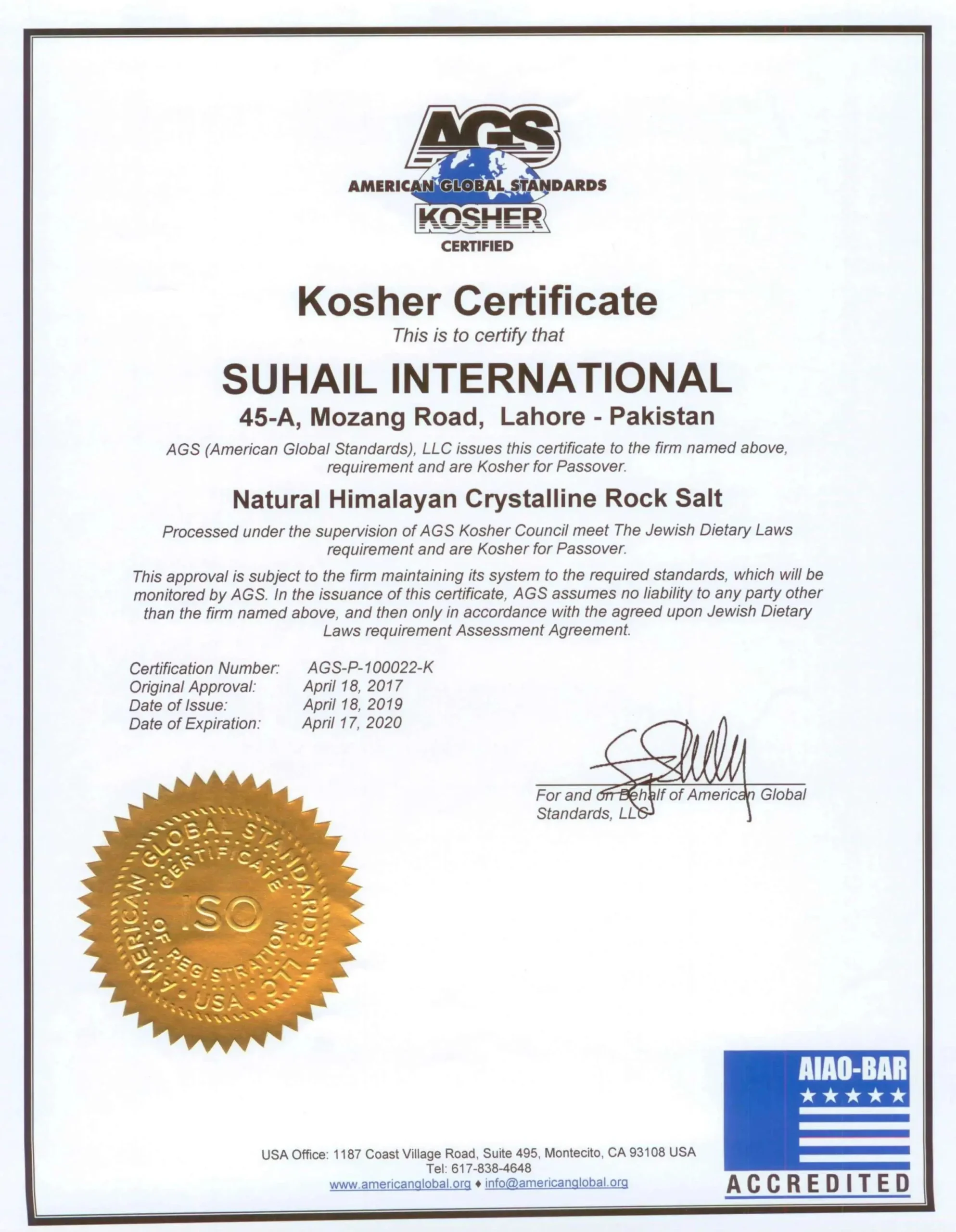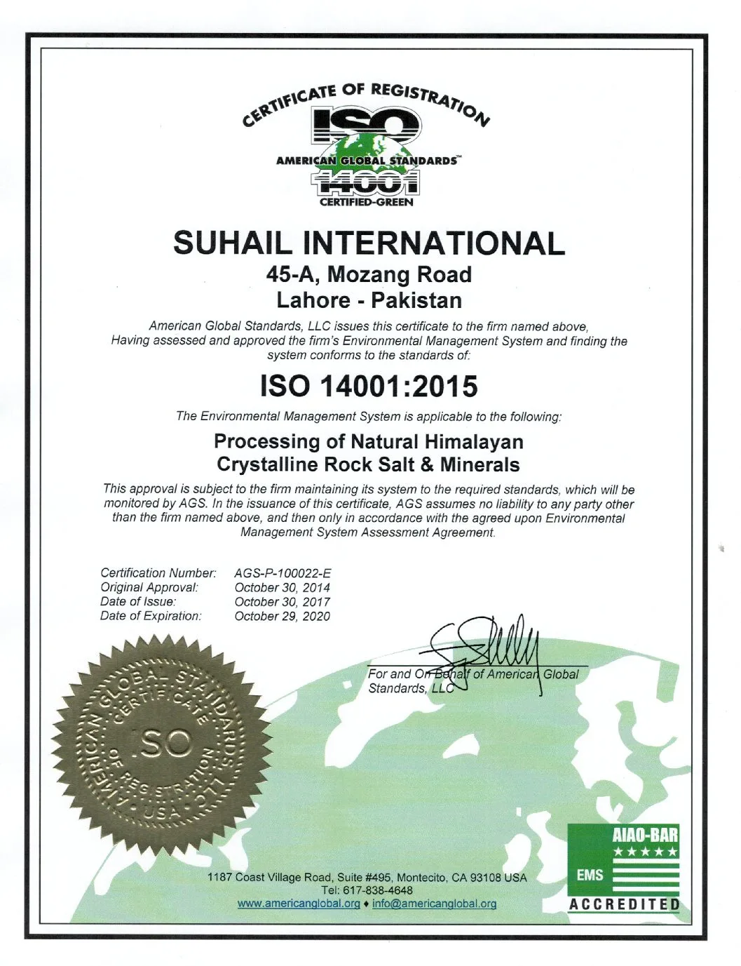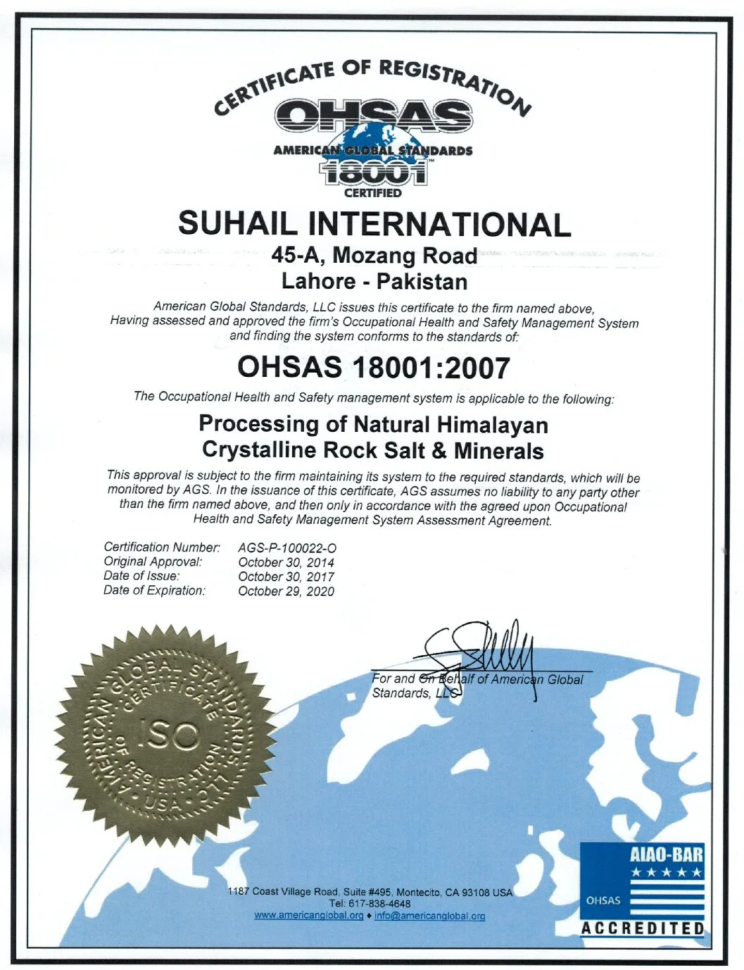 Suhail International is one of the leading manufacturers and exporters of Himalayan Crystal Salt in Pakistan. It was established in 1995, which has now grown into the largest organization of Himalayan Crystal Salt products. We are ISO 9001:2008 & HACCP Certified and FDA approved organization which assures superior quality management system and its high level of safety that governs the manufacturing and processing of all Himalayan Crystal Salt products.